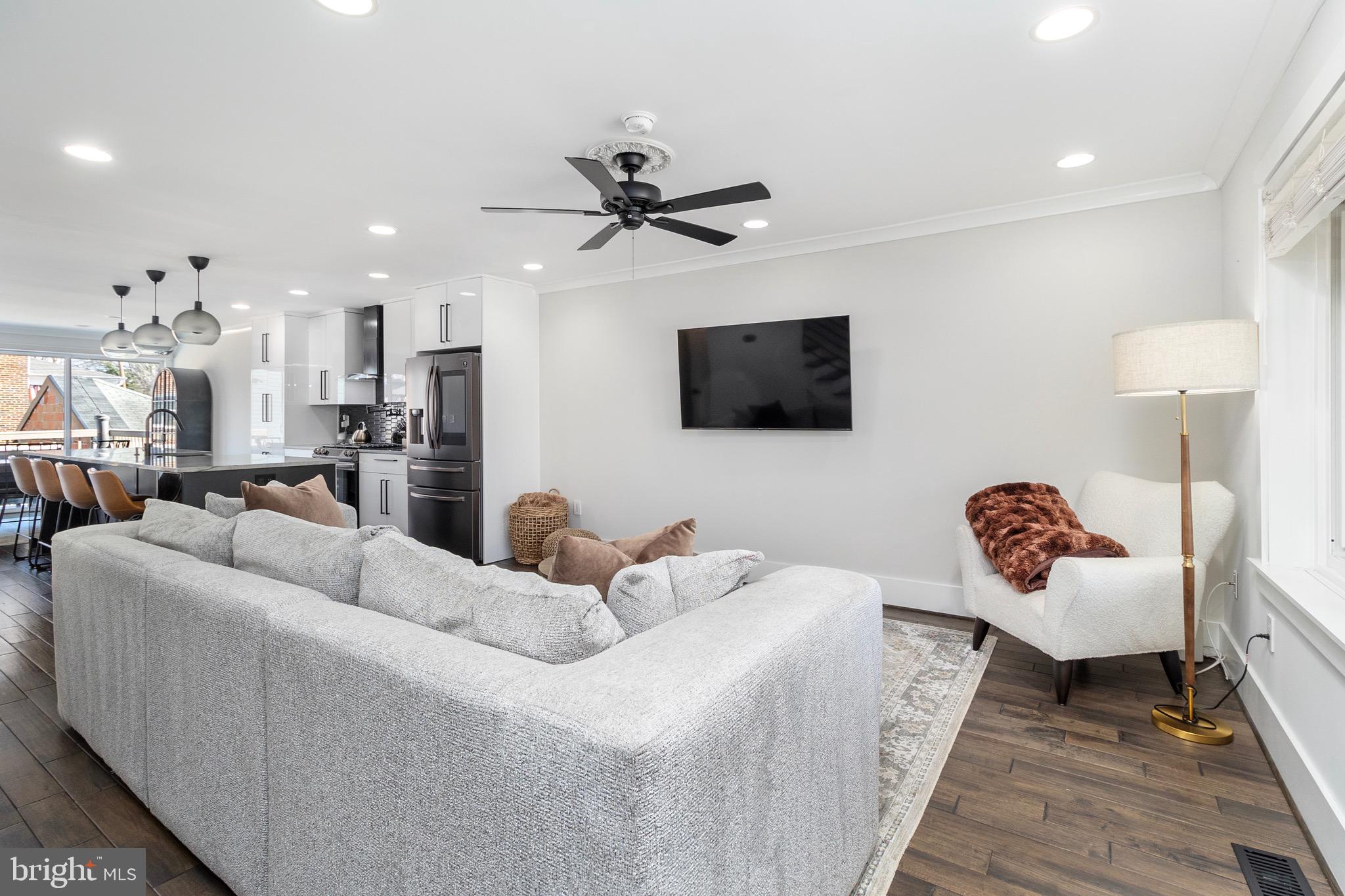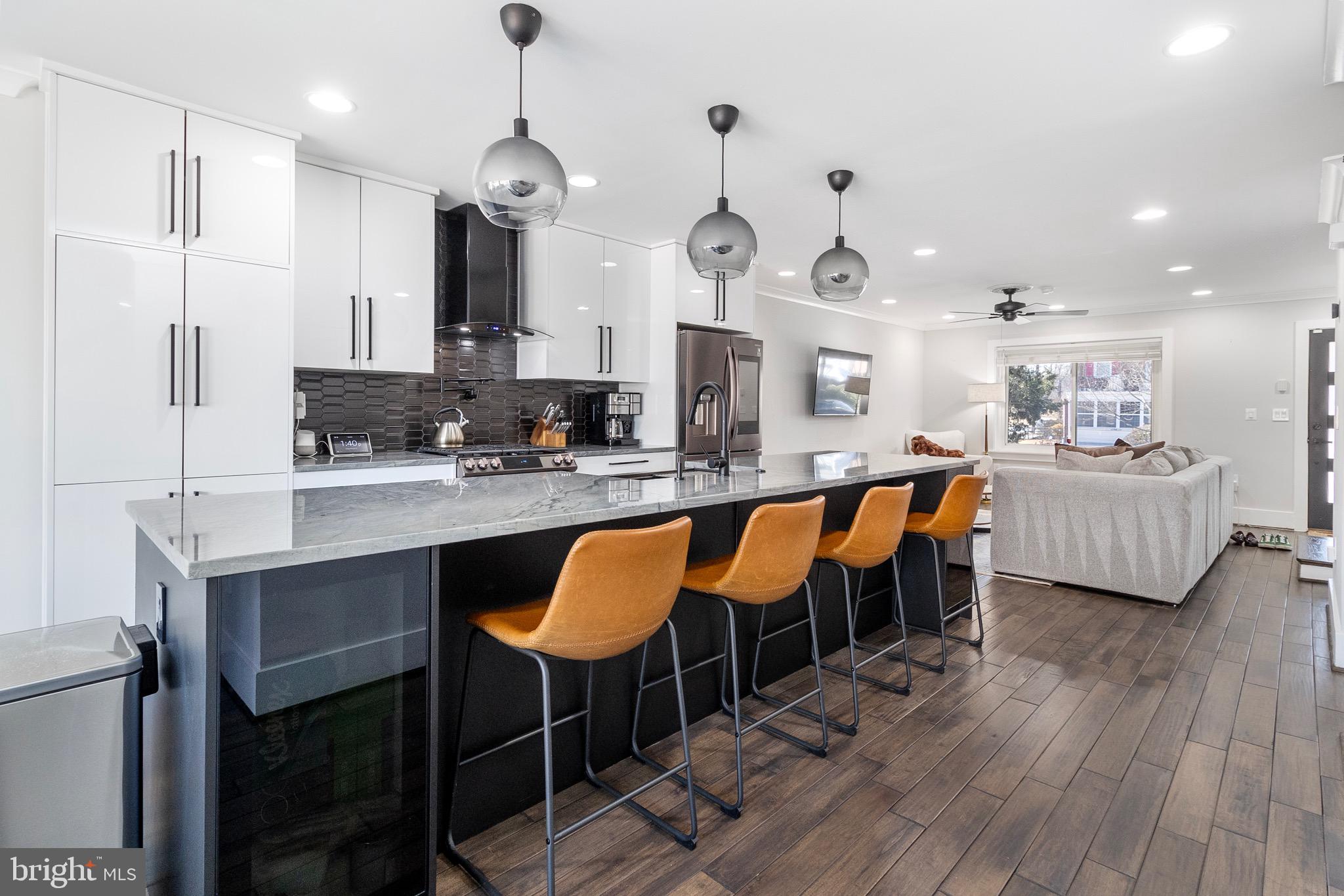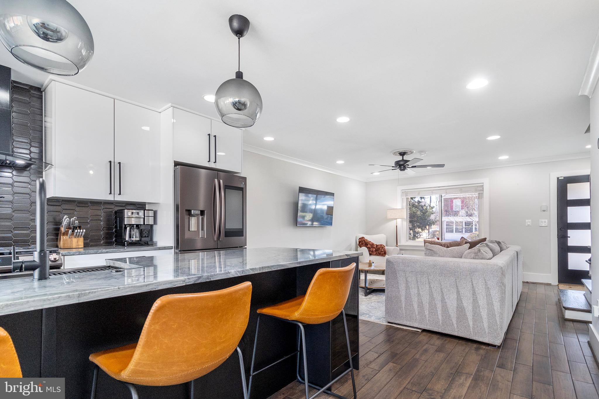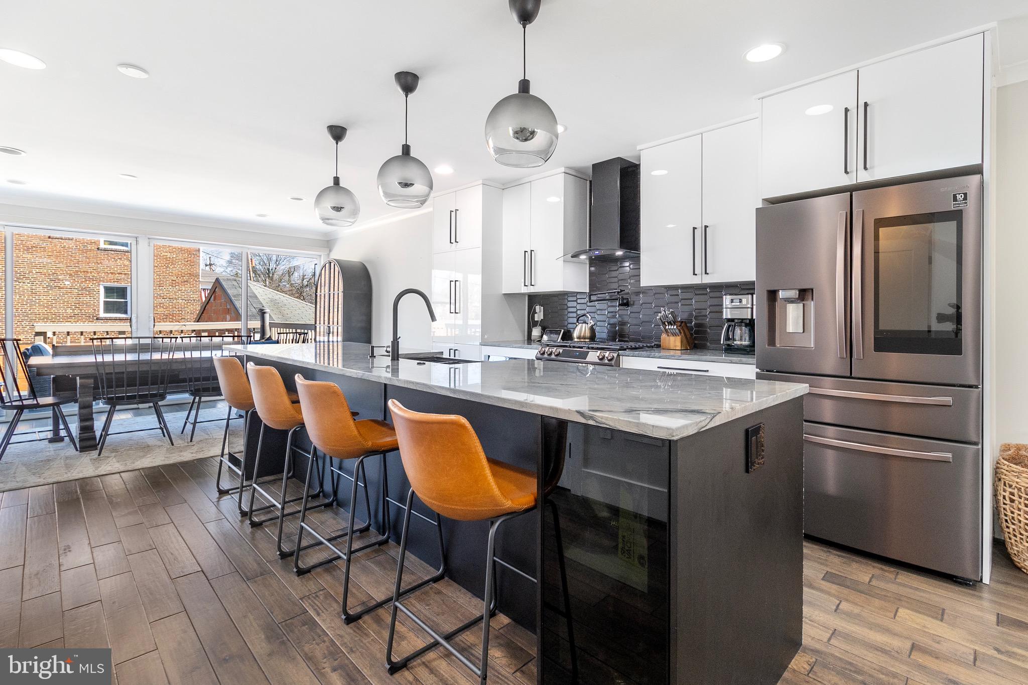 As you step inside, you'll be greeted by a warm and welcoming atmosphere, where natural light streams through large windows, creating a bright and airy ambiance. All hardwood floors throughout, the main level features an open floor plan that connects the living, kitchen and dining. The modern kitchen is a chef's delight, with sleek countertops, stainless steel appliances, and plenty of cabinet space for all your culinary needs. An additional powder room on this level adds convenience for guests.