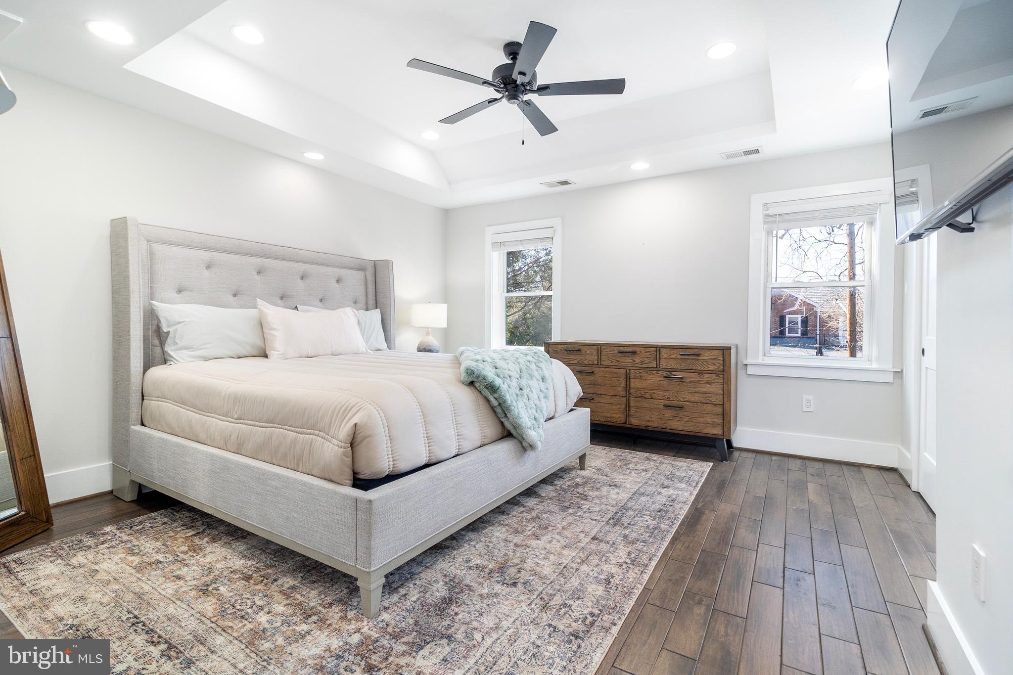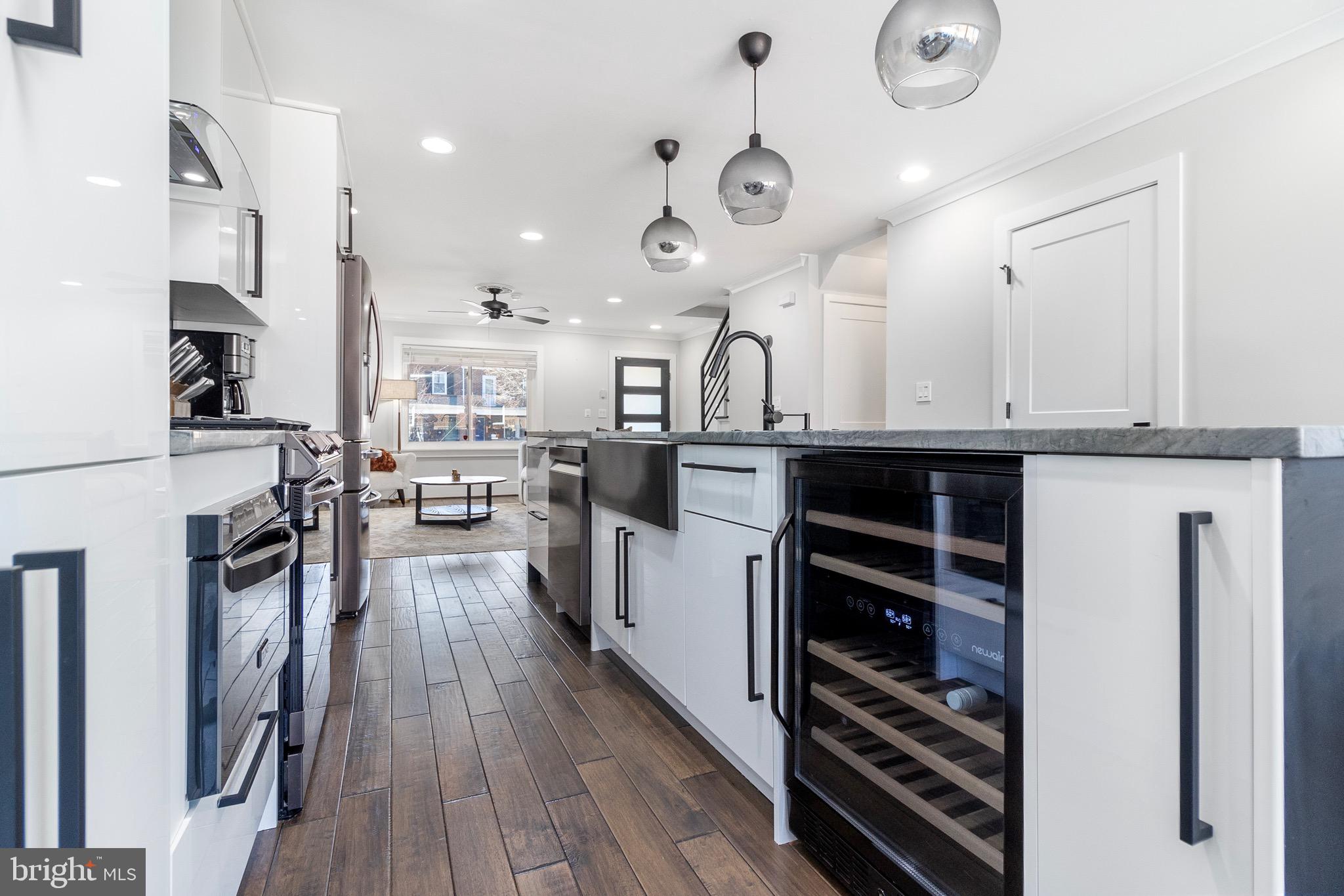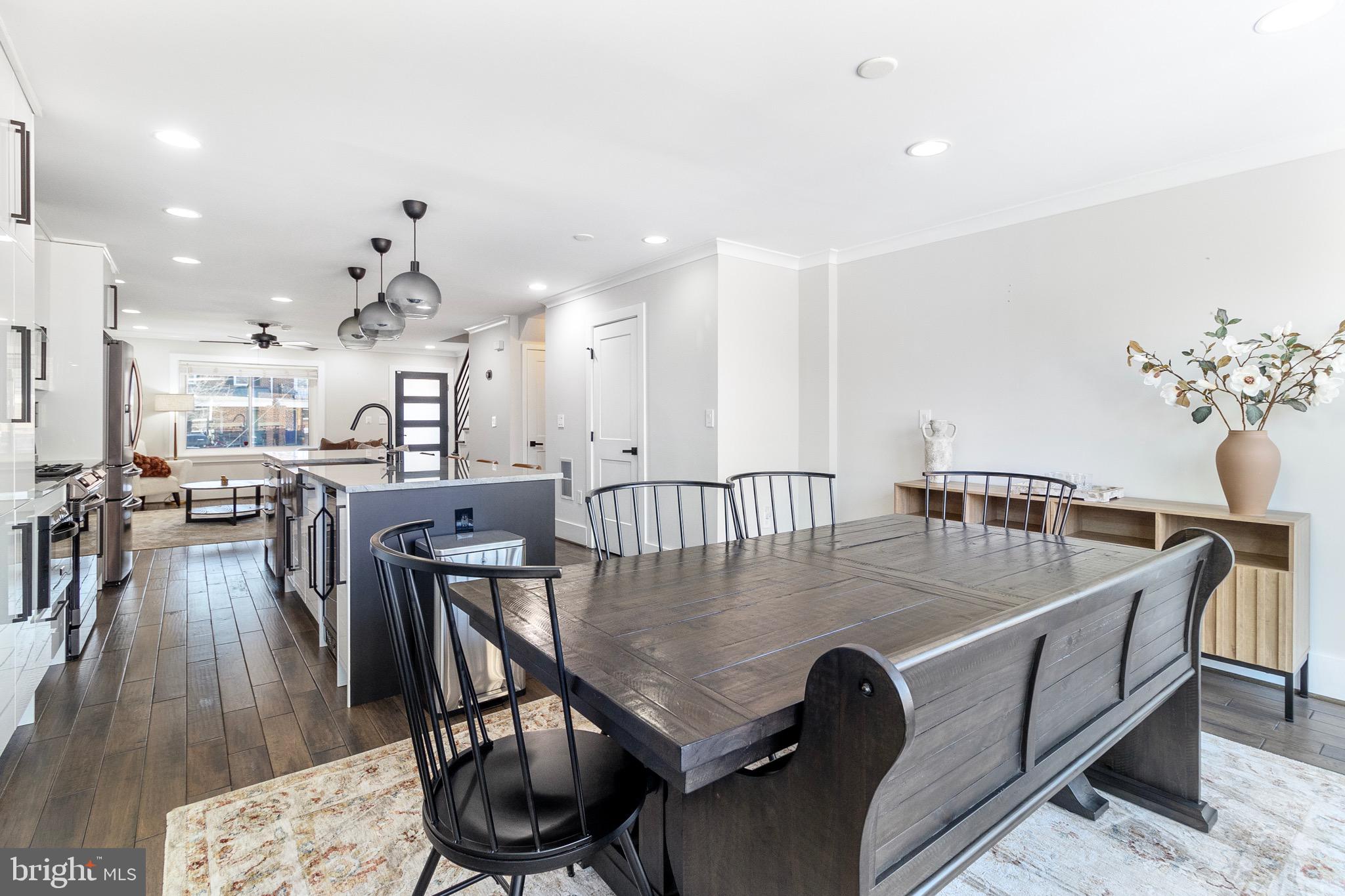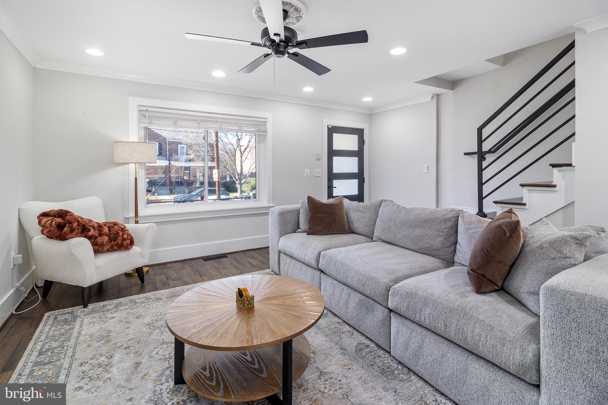 As you step inside, you'll be greeted by a warm and welcoming atmosphere, where natural light streams through large windows, creating a bright and airy ambiance. All hardwood floors throughout, the main level features an open floor plan that connects the living, kitchen and dining. The modern kitchen is a chef's delight, with sleek countertops, stainless steel appliances, and plenty of cabinet space for all your culinary needs. An additional powder room on this level adds convenience for guests.
