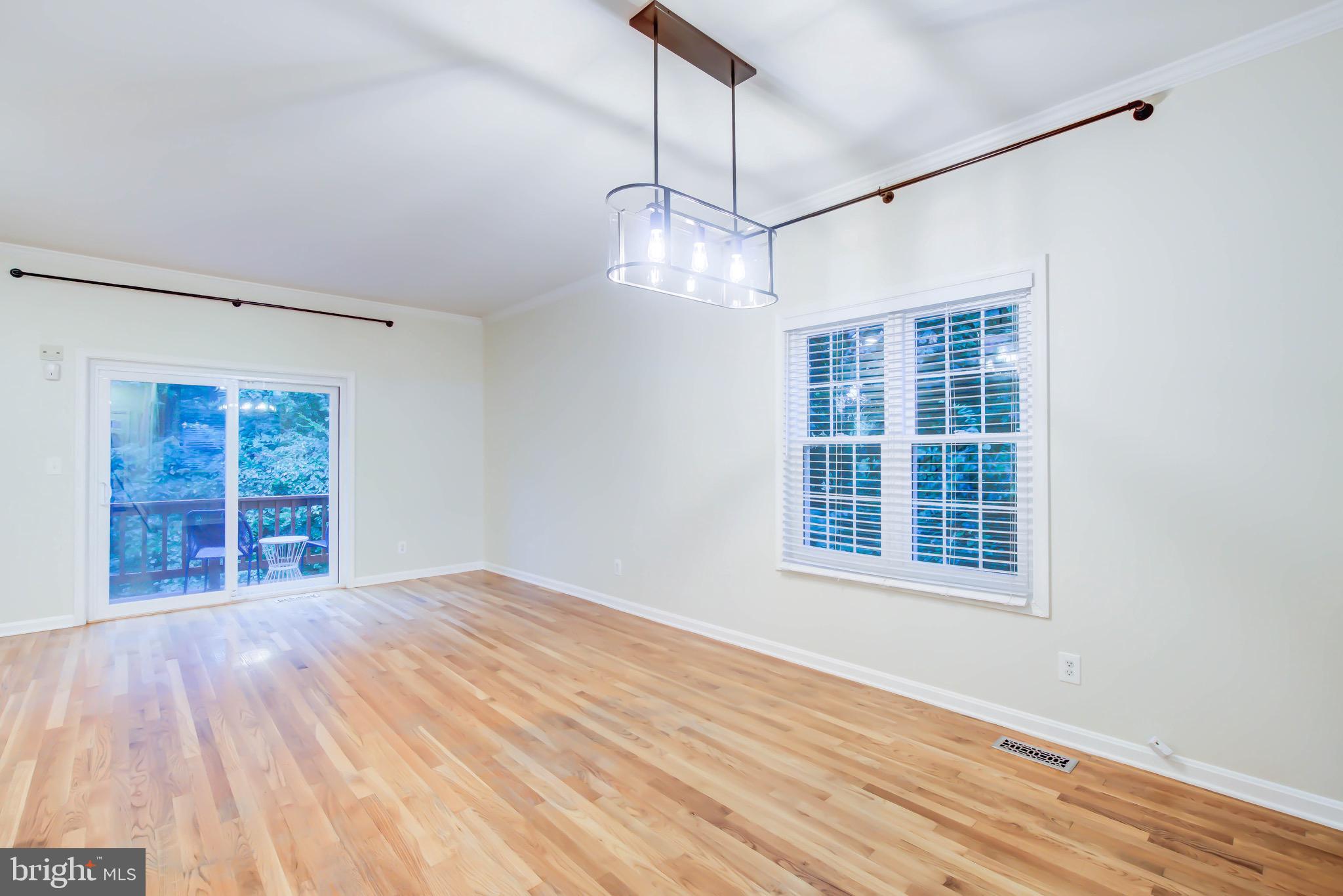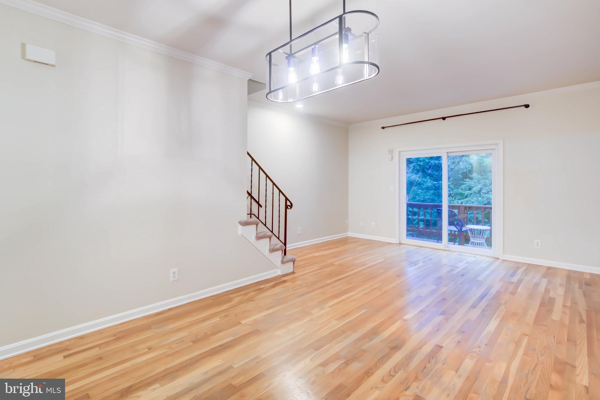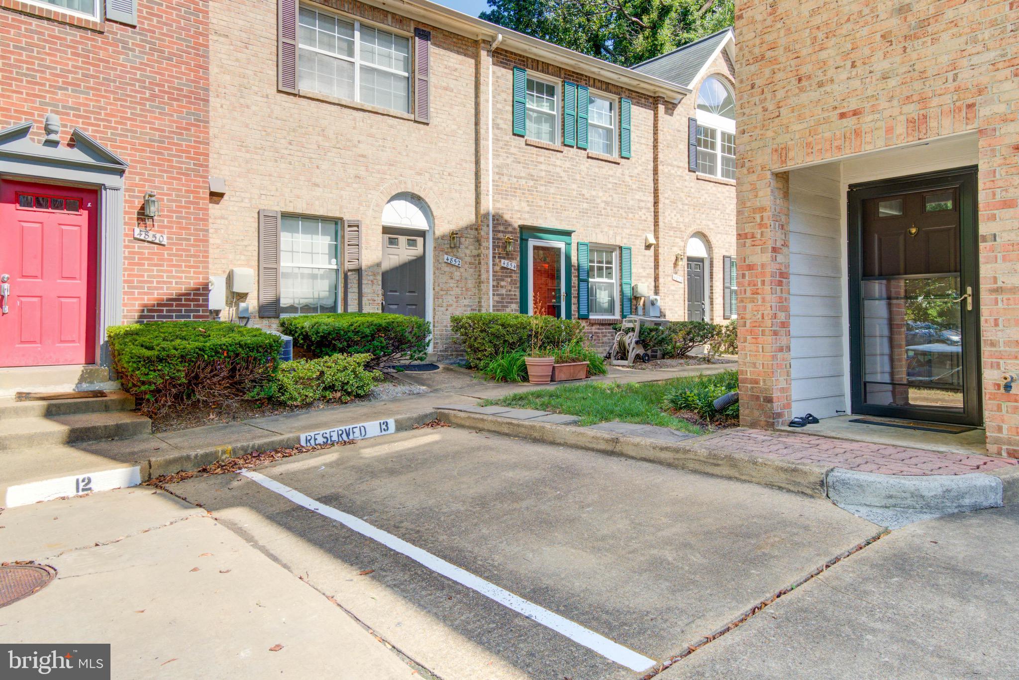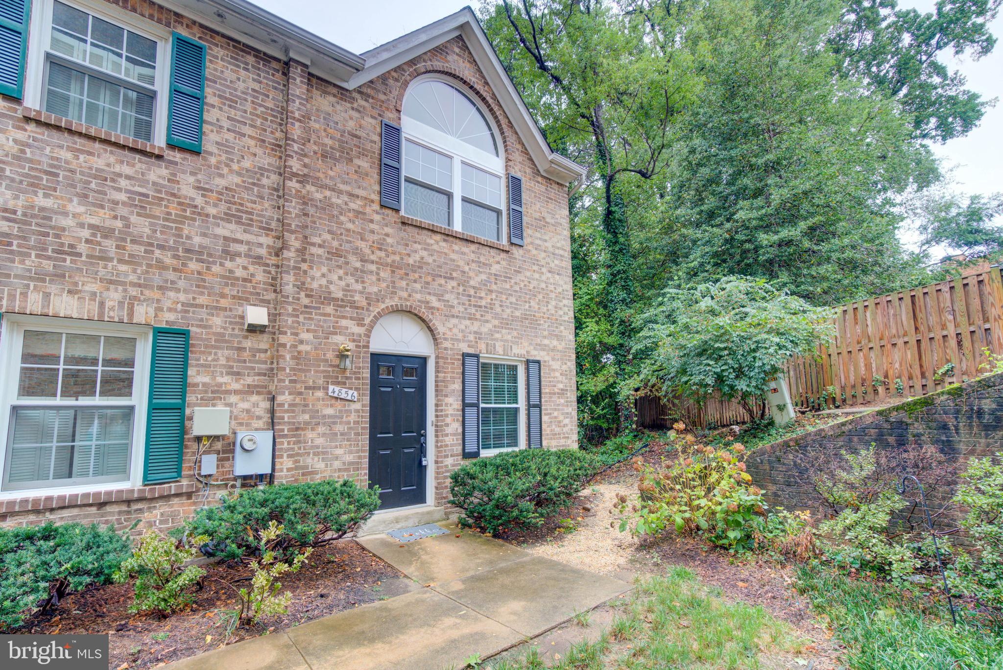 Welcome to this serene, updated brick end-unit townhome in Columbus Square. Located next to Four Mile Run, this 3-level home offers 2 bedrooms and a den, 2 full baths, and 2 half baths, beautifully finished throughout. The main level features gleaming hardwood floors, an open living and dining area, and sliding glass doors that lead to a deck with private views to woods and running creek. The updated kitchen boasts carrera quartz countertops, stainless steel appliances, tile floors, and a breakfast bar that over looks the living space. Upstairs, you'll find two spacious bedrooms, each with its own fully renovated en-suite bathroom. The primary suite features vaulted ceilings for an airy, luxurious feel. The versatile lower level includes a large family room, half bath, laundry room and a den, great option for a guest bedroom or an office. One reserved parking space is included and additional guest parking. Unbeatable proximity to Metro bus, trails, parks, and the community center.