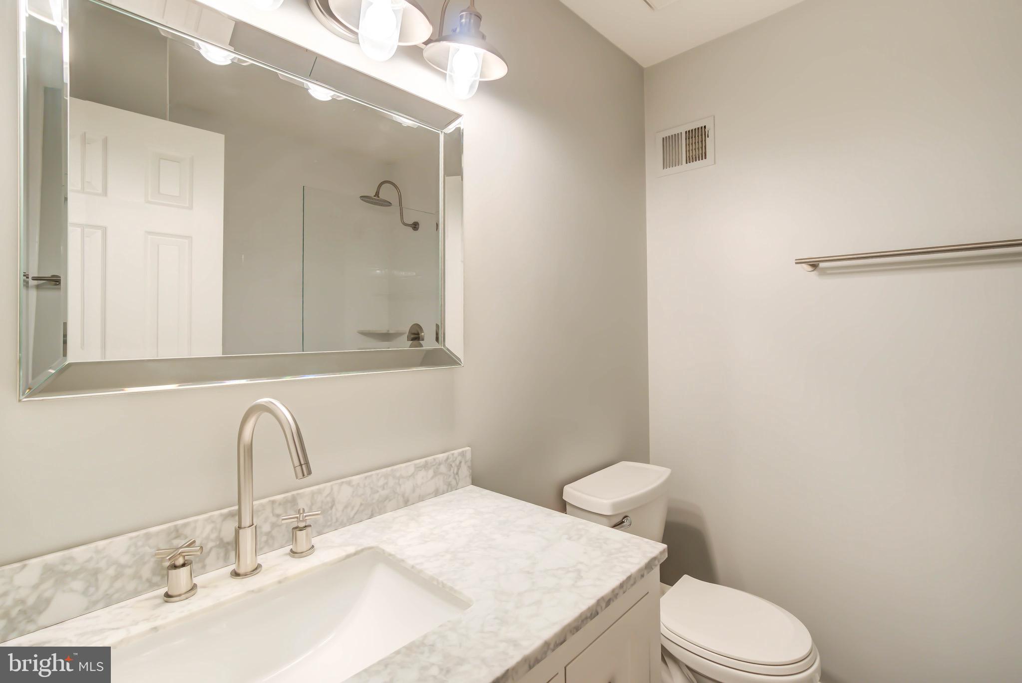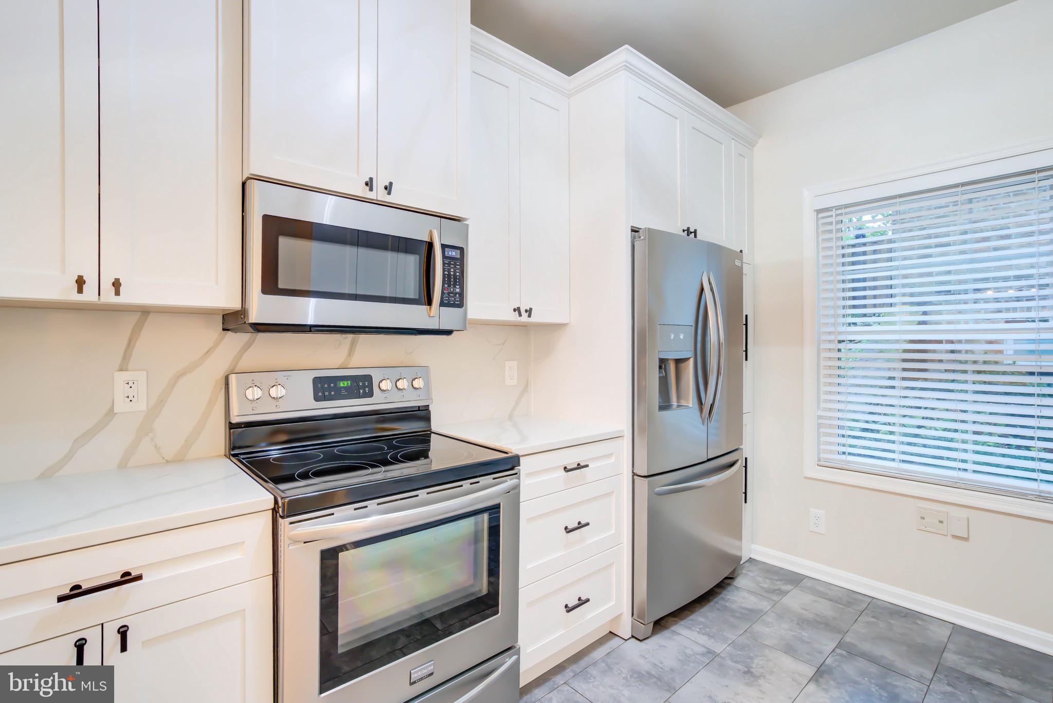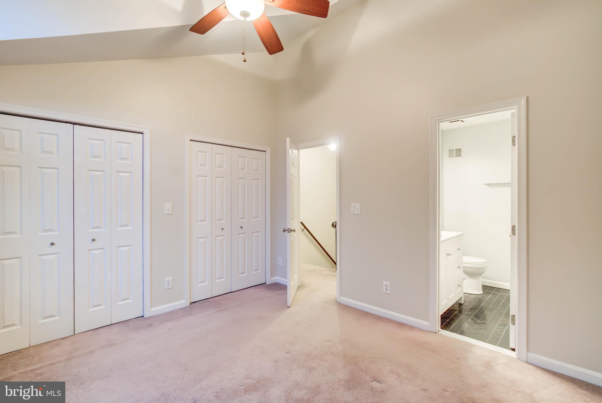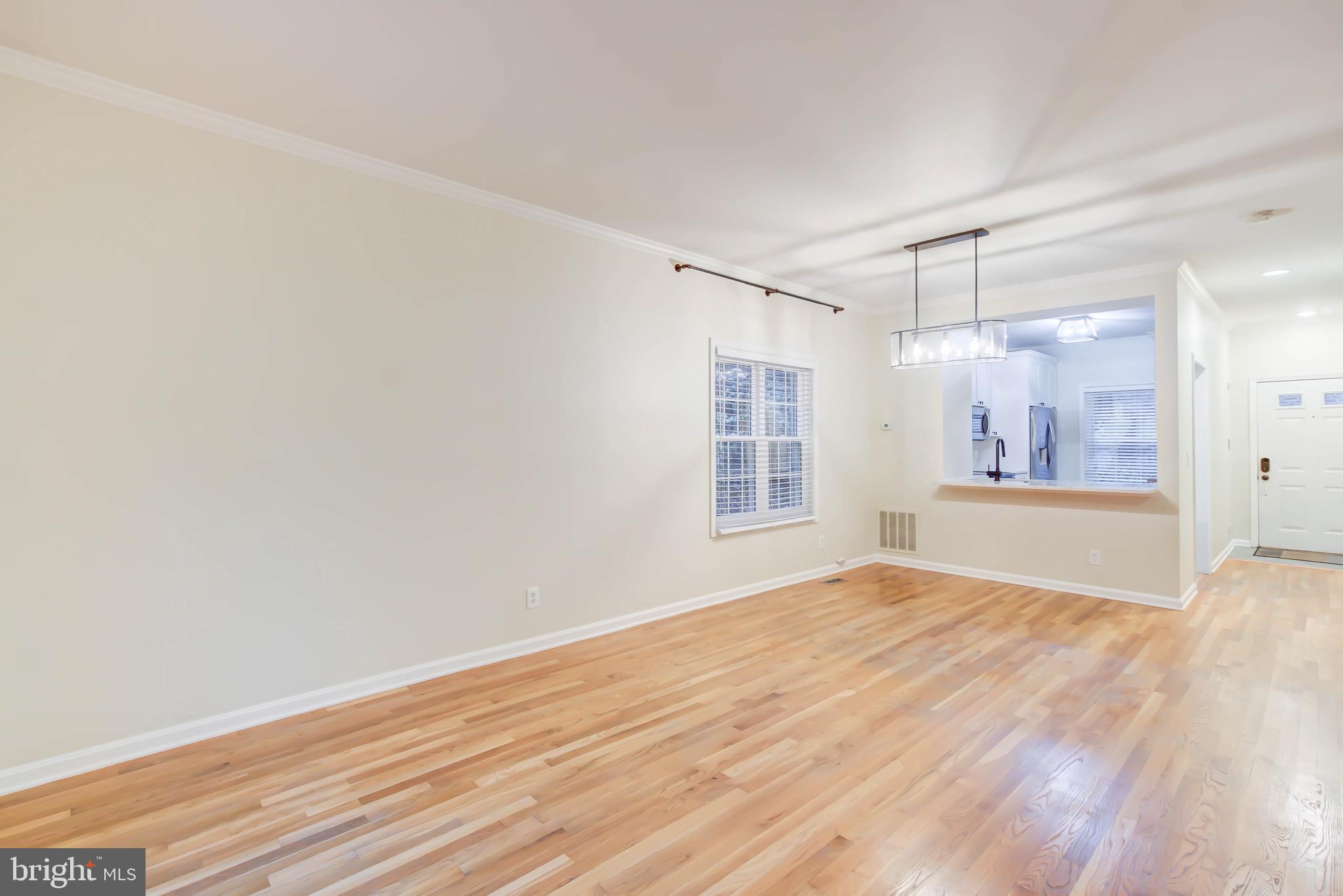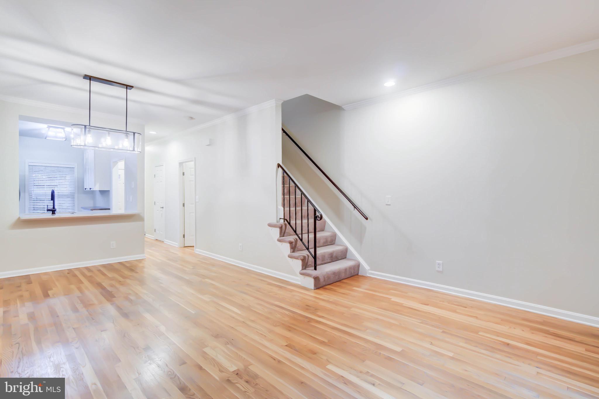 Welcome to this serene, updated brick end-unit townhome in Columbus Square. Located next to Four Mile Run, this 3-level home offers 2 bedrooms and a den, 2 full baths, and 2 half baths, beautifully finished throughout. The main level features gleaming hardwood floors, an open living and dining area, and sliding glass doors that lead to a deck with private views to woods and running creek. The updated kitchen boasts carrera quartz countertops, stainless steel appliances, tile floors, and a breakfast bar that over looks the living space. Upstairs, you'll find two spacious bedrooms, each with its own fully renovated en-suite bathroom. The primary suite features vaulted ceilings for an airy, luxurious feel. The versatile lower level includes a large family room, half bath, laundry room and a den, great option for a guest bedroom or an office. One reserved parking space is included and additional guest parking. Unbeatable proximity to Metro bus, trails, parks, and the community center.